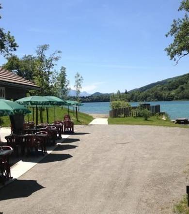 There are pebbles beaches, playground for children and a restaurant 'Le Miradou' where you can enjoy a nice drink / meal facing the lake and the surrounding mountains.