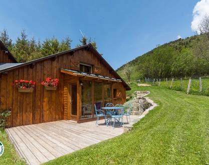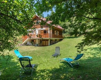 Beautiful and renovated detached log chalet, in a small mountain village. Authentic atmosphere, perfect for rest and getting away from it all in the countryside. Ground floor: vast lounge-cum-kitchen opening up onto a terrace, lounge area with wood-burning stove, Bdr. 1 (1 double bed), washroom-WC (restricted mobility access). 1st floor: Bdr. 2 (1 double bed, washroom-WC), Bdr. 3 (2 singles), small lounge. Flatscreen TV, washing machine, dryer, dishwasher, microwave, electric heating, terrace, garden. Numerous summer and winter activities nearby, including downhill and Nordic skiing, hiking, Valbonnais Lake. Extra capacity for 1 person on the put-you up in the lounge. Cleaning costs : 60€