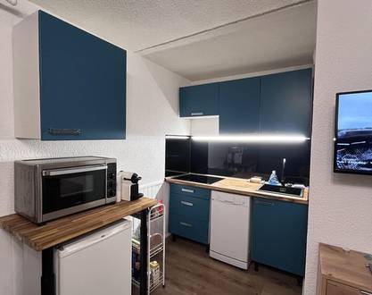 Fully renovated 25 m² apartment, ideal for 4 people, located 100 meters from the ski slopes of the resort. It features a separate bedroom with bunk beds, a living room with a sofa bed, and a fully equipped kitchen.