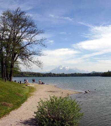 Plage en herbe, située au bord du lac de Pierre Châtel. Jeux pour enfants, toilettes, barbecues, espace aménagé pour les chiens, parking gratuit.