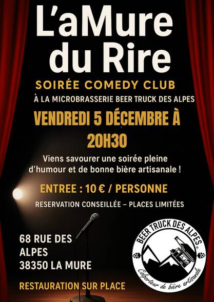 Préparez-vous à une soirée de rires et de bonne humeur ! Le Beer Truck des Alpes se transforme en véritable Comedy Club pour accueillir une sélection de stand-uppeurs prêts à vous faire pleurer de rire.