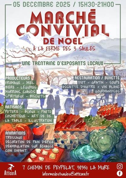 3ème édition du marché de Noël convivial de la ferme des 3 saules avec une trentaine d'exposants locaux (producteurs, artisans...). Des animations et une restauration sur place.