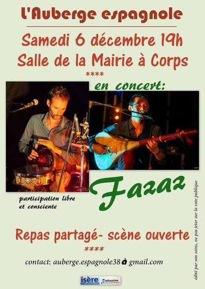 L'Auberge Espagnole invite FAZAZ. ! Le concert sera suivi d'un repas partagé (merci à tous les spectateurs(trices) d'apporter un plat et-ou une boisson mis en commun), puis d'une scène ouverte.